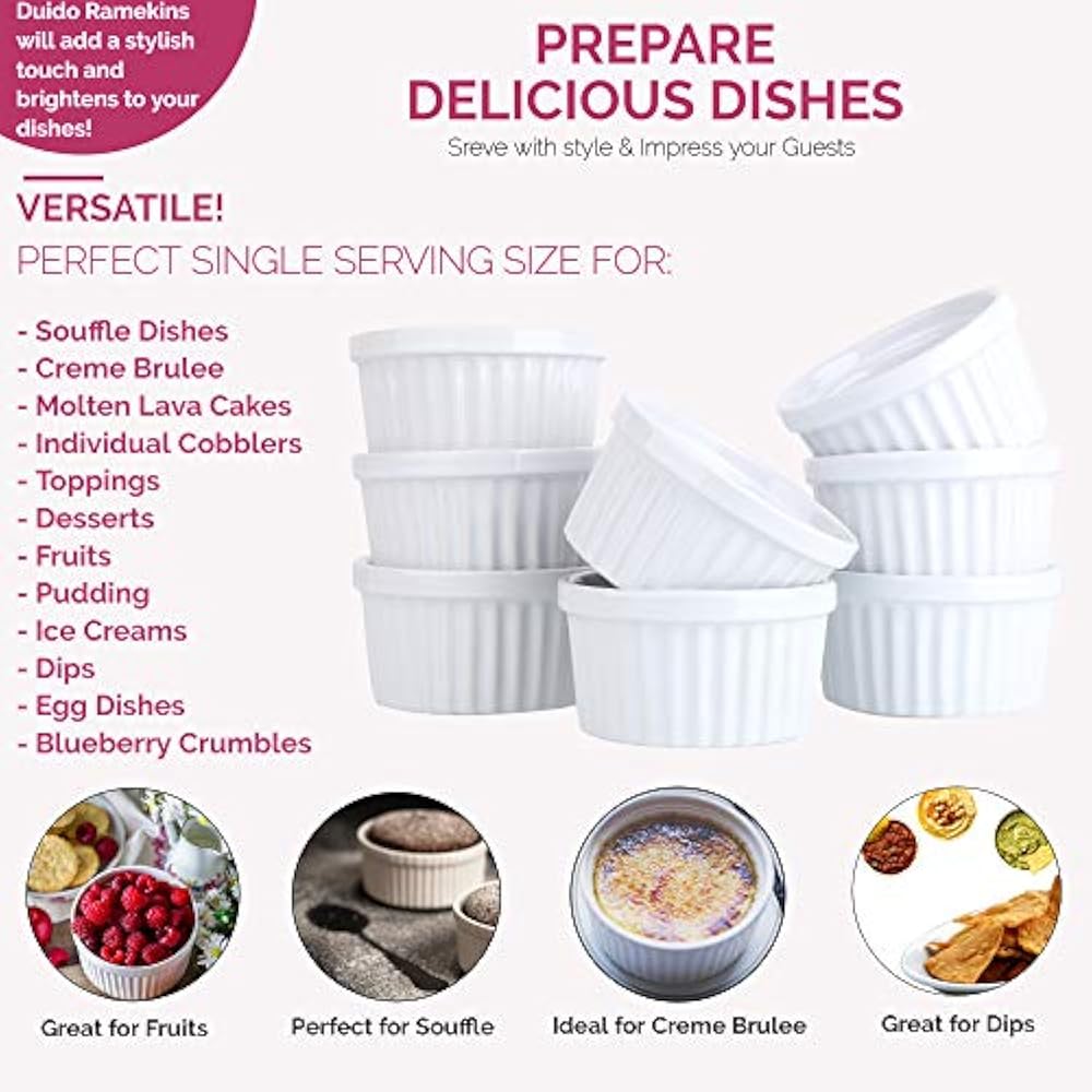 They are often sold in sets. These little dishes are also great for teeny appetizers like mixed olives. Kook 8 oz porcelain ramekins, oven safe, for baking. Ramekins offer the perfect portion of sauces, condiments, and sides. Fluted white ceramic ramekins are versatile in the kitchen. We carry sauce cups in china, glass, plastic, stainless steel, and aluminum materials. Use at a buffet for individual servings, or use in the oven for mini desserts. Buy top selling products like noritake® colorwave ramekins (set of 2) and our table™ 8 oz. Sold & shipped by unbeatablesale. This small size 4 oz ramekin set measures 3.5 diameter x 1.65 high and holds 1/2 cup each and work great for single serve desserts or sauces at your dinner parties. This item contains 6 ramekins. Noritake® colorwave ramekins in clay (set of 2) 164. Notify me when this product is back in stock: