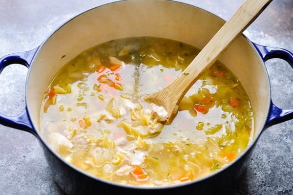 Give basic chicken noodle soup a twist with thick, chewy udon noodles and shredded gochujang chicken.